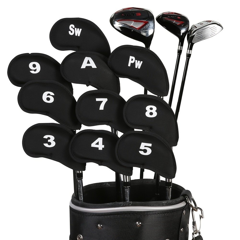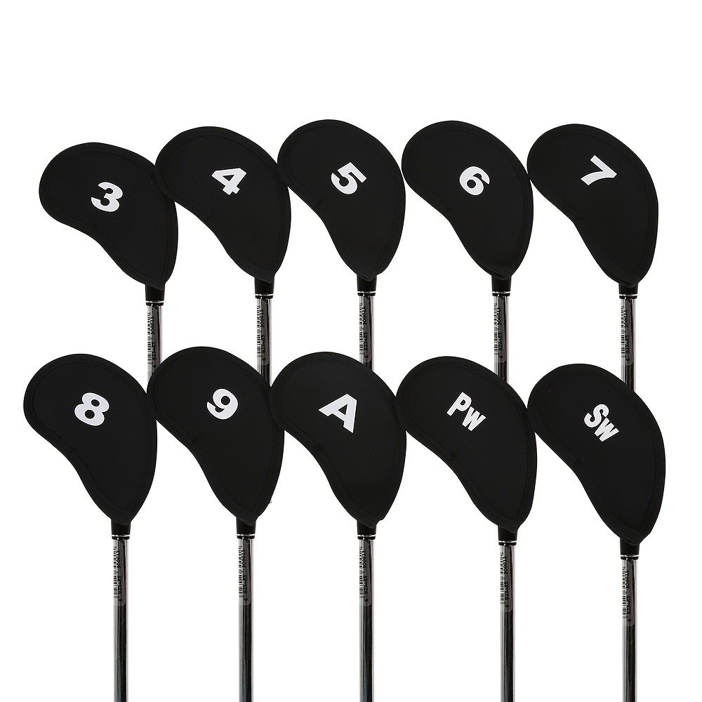 10pcs Golf Club Covers Protectors Headcovers Accessories For Prevent Scratches Or Damage - Black