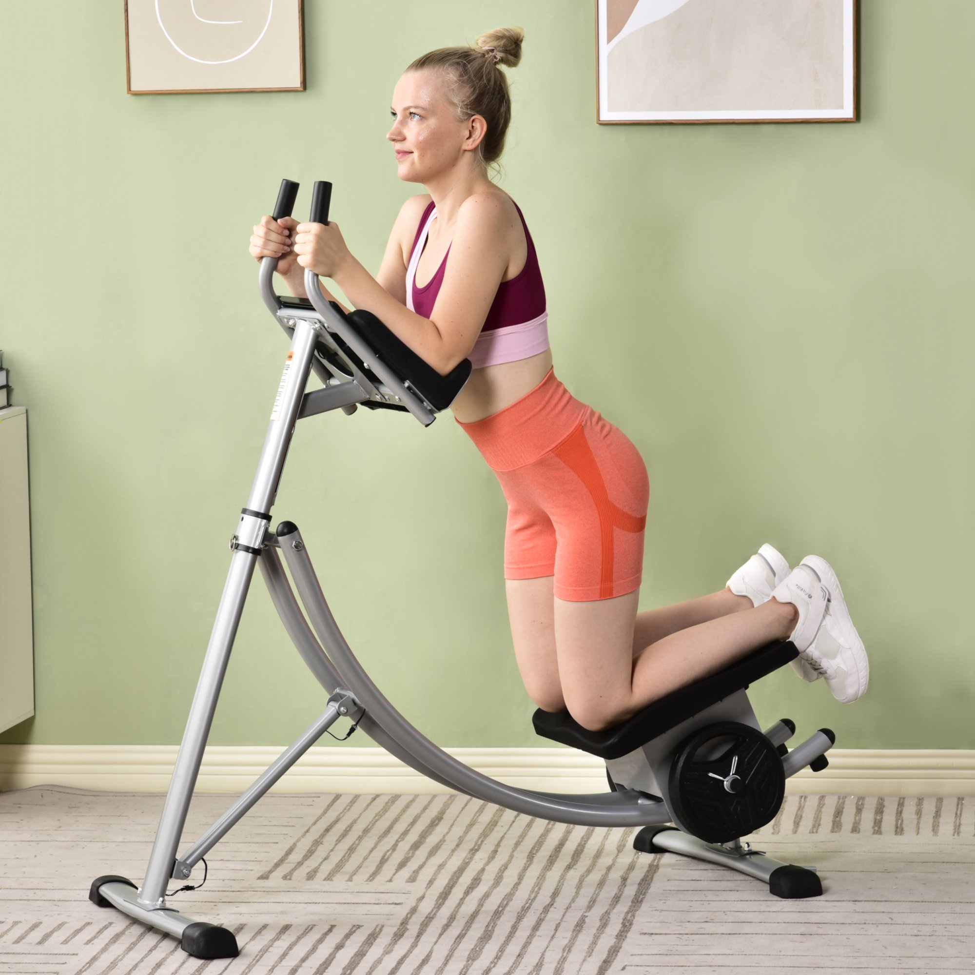 BEST AB MACHINE: Constructed from steel bearings; vinyl covered molded foam arm pads and adjustable seat. This Deluxe Abdominal Crunch Coaster's bottom-up slider motion is easy to do & easy on you; This deluxe ab machineMAX provides a comprehensive workout with virtually no stress or strain on your neck / back and is used at lots of fitness facilities; Includes: folding design; Free-Style Seat (three position); adjustable handle; Rep Counter; and pair of Removable black weight block.