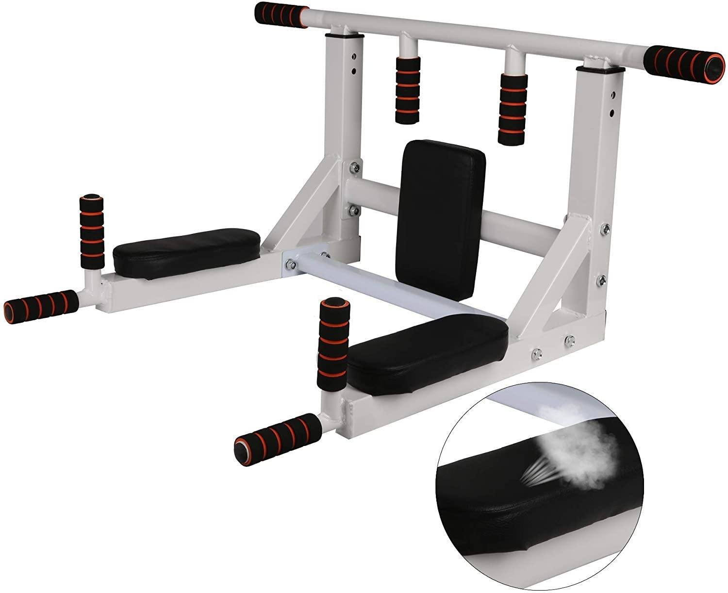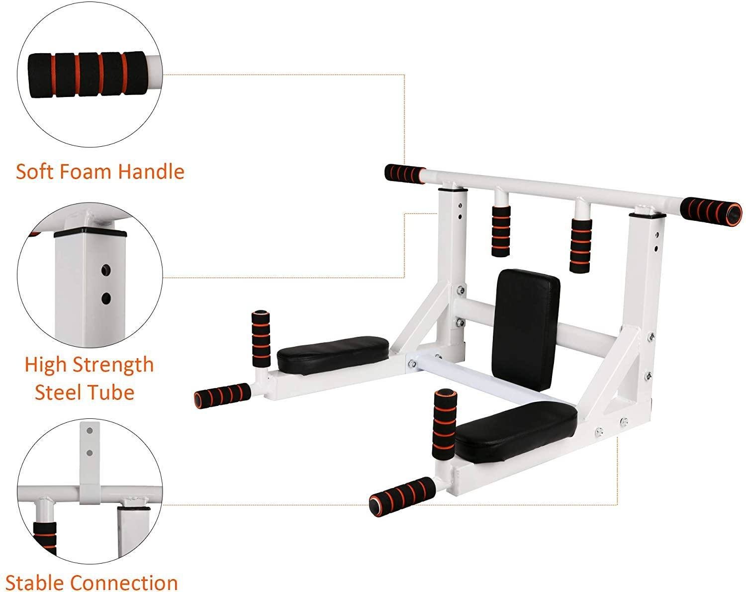 2 in 1 Multifunctional Wall Mounted Pull Up Bar-Ideal for Fitness Enthusiast:Allow for a variety of angles to workouts. Perfect for exercising your backs; shoulder; chest; arms; triceps; biceps; lats; and the front of your abs.Offer countless possibilities for your exercises. Can be used with punch bags power ropes or yoga straps resistance bands; yoga ropes(not included). 2 in 1 Multifunctional Wall Mounted Pull Up Bar. You can install this mounted pull up bar in the room; home or commercial gym. The equipment can be removed when not in use.Scientific Wide distance (27/17 inches). Avoid rubbing against walls ; enjoy your exercise time.